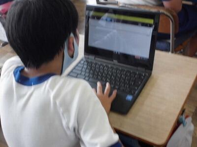 【6年生 】テストの残り時間を活用して、タブレットでタイピング練習をしました。