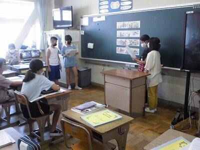 【1年生 国語】夏休みの思い出の発表を聞いて、知りたいことを尋ねたり感想を伝えたりしました。