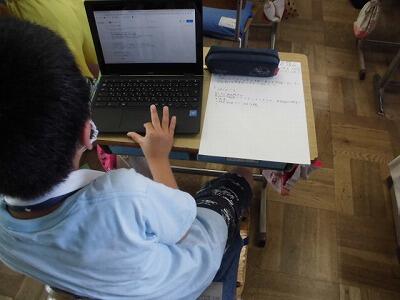 【5年生 国語】ICTサポーターの先生と「ミライシード」の使い方を勉強しました。