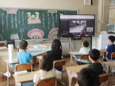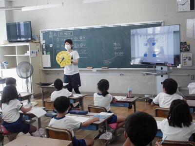 【4年生 理科】午前中に豊春小から見えた月の様子を大型モニターで振り返りました。