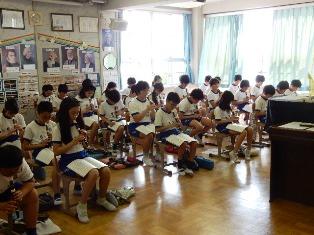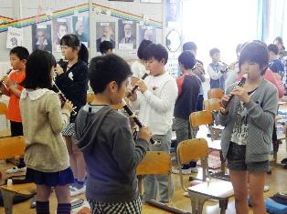 6年生は音楽の授業で、リコーダーの練習をしています。