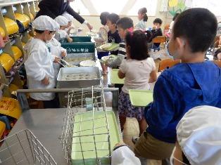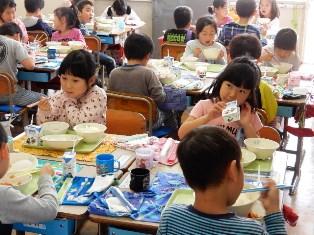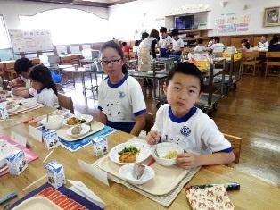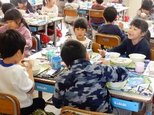 1年生も初めてのお誕生日給食です。お兄さんお姉さんと