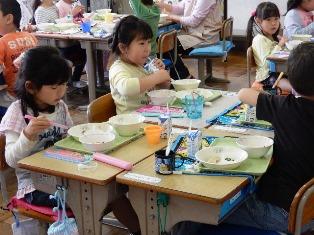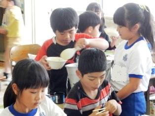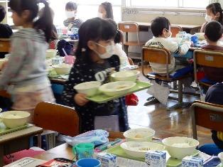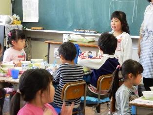 1年生も給食の準備や片付けなどに慣れてきた様子です。