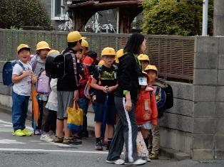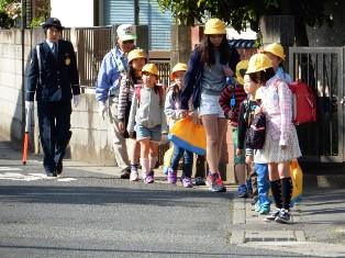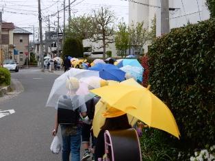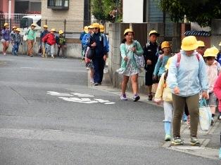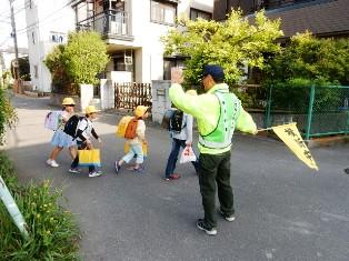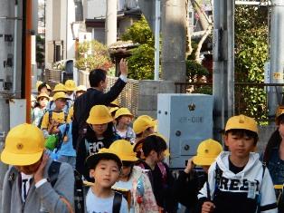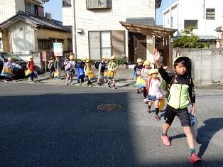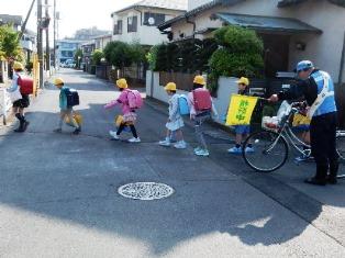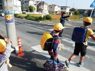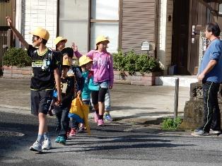 今日も保護者、交通指導員さん、地域の方々に見守られ、