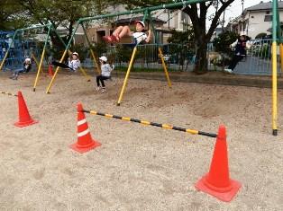 ブランコで楽しそうに遊んでいる子どもたちで。運動委員会の