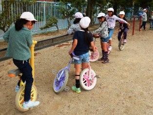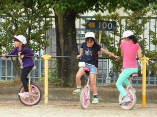 今日は一輪車で遊んでいる子どもたちがたくさんいました。
