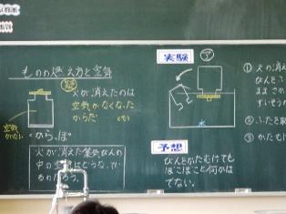 集気ビンの中に燃えているろうそくを入れてフタをすると火が消える。
