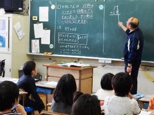 2年生は算数の授業で、2桁同士の数のたし算の筆算です。
