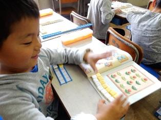 1年生は算数の授業で、ブロックを使って数の学習をしています。