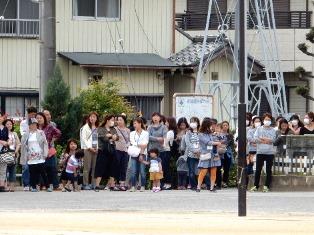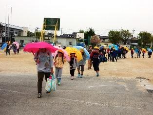 担当の先生から話があり、その後、校庭に整列して、校長から