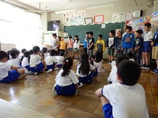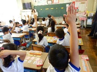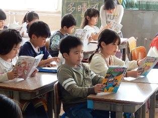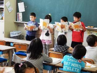 1年生は国語の授業で、「あいうえお」の歌をうたいながら、
