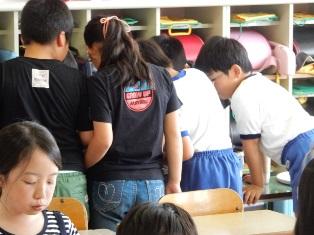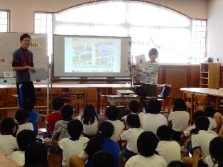 JTEと担任の先生とみんなで楽しく英語で会話をしています。