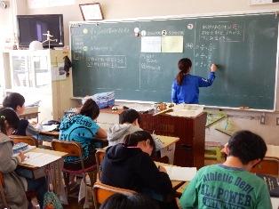 6年生は算数の授業で、分数のかけ算の学習です。これまで