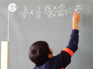 6年生は算数の授業で、分数のかけ算の約分の仕方を
