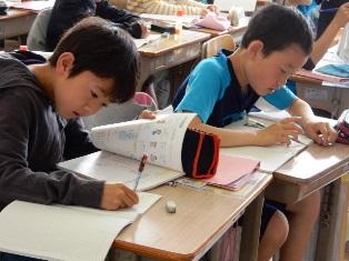 3年生は、書写の授業で、硬筆の練習です。お手本をなぞり