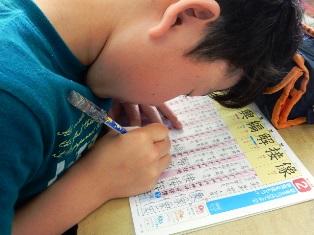 4年生は、漢字のテストです。「しんせつ・新雪」などです。