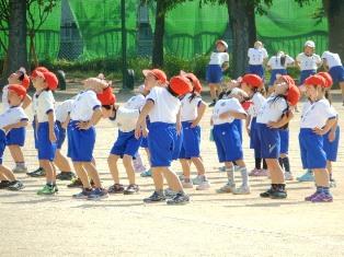 春日部ナンバーワンのあいさつや運動に元気よく取り組んで