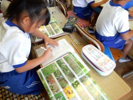 3年生は理科の授業で、自然の観察をしています。様々な植物や昆虫を観察しています。