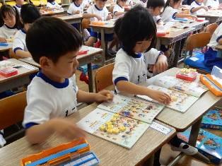 1年生は、ひらがなの練習をしています。書いていたのは「い」と