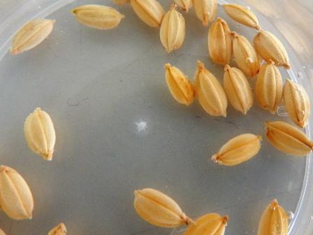 これらを使って苗を作り、バケツに植えると秋には、稲穂が垂れます。