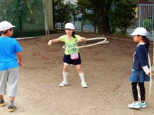 準備運動です。お兄さんお姉さんに混じって、1年生も回旋を