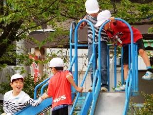 滑り台で楽しそうに遊ぶ子どもたちです。