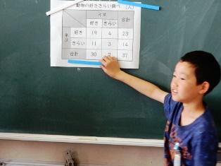 4年生は算数の授業で、犬が好きか嫌いか、猫が好きか嫌いかの