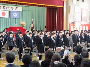 卒業生の皆さんは、卒業証書を手渡すと「ありがとうございま