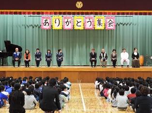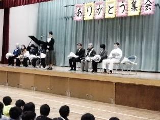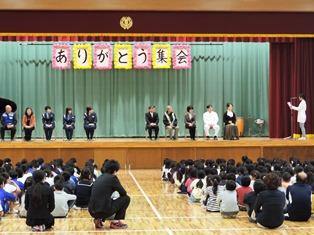 「はじめの一歩」を全校児童で歌い、「ありがとう」の気持ちを
