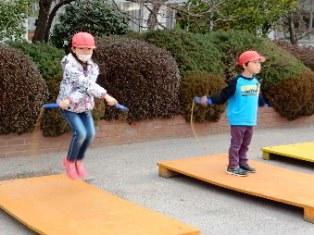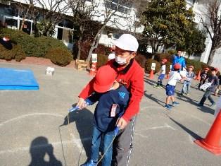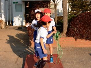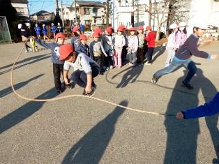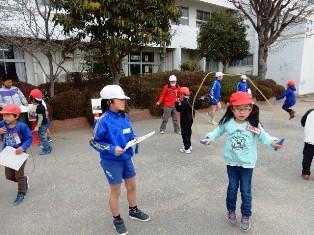 緊急地震速報の放送前は、なわとび教室でみんな頑張っています。