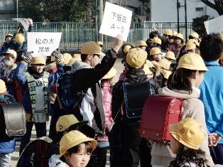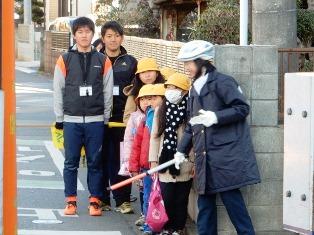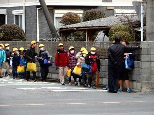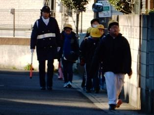 交通指導員さんや保護者、地域の方々の見守り、