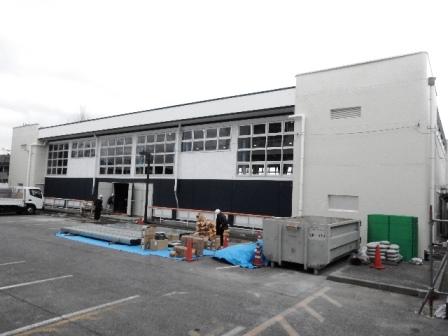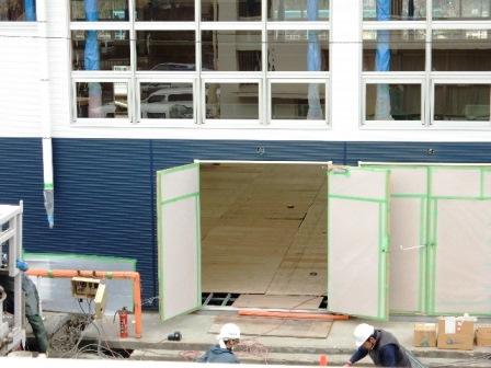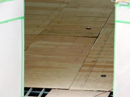 体育館の耐震工事は、足場が完全に外されました。体育館の中では、床を張る