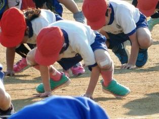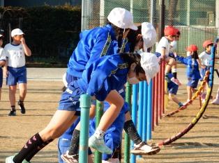 転んでしまった子もいたのですが、声を掛け励まし合って練習しています。