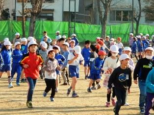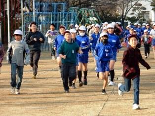 寒さに負けず、今朝も朝マラソンに取り組む子どもたちです。