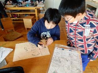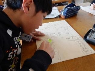 5年生は図工の授業で、版画の制作をしています。カーボン紙で