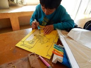 下書きを描いて、その後、彫刻刀で彫り始めました。