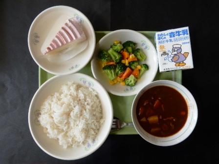 ハヤシライス、ブロッコリーのソテー、牛乳です。