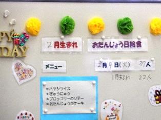 2月のお誕生給食です。学年閉鎖などで1月のお誕生給食が
