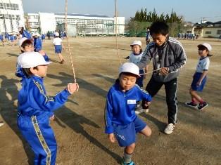 先生方も加わって、子どもたちはやる気満々でなわとびに