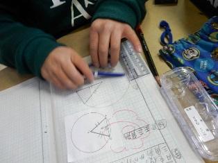 3年生は少人数の算数の授業で、円の性質を使って、二等辺三角形や