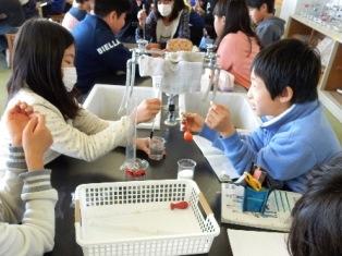 5年生は、理科の授業で食塩やミョウバンの溶け方を実験で