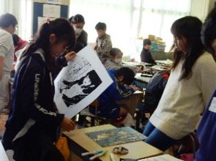 5年生は図工の授業で、版画の試し刷りでしょうか。