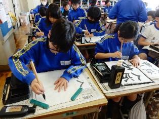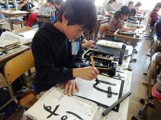 4年生は書写の授業です。「はす」の文字を毛筆で書いています。