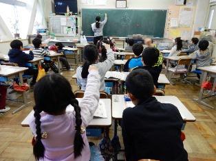 4年生の教室では、子どもたちが目と耳と心を傾けて、お話を