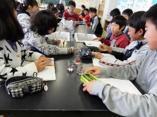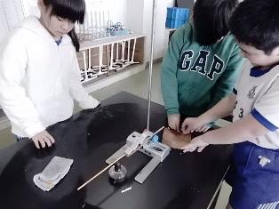4年生は理科の授業で、金属の熱の伝わり方を調べる実験の