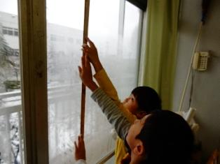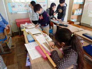 2年生は算数の授業で、これは窓ガラスの大きさを測っている