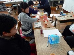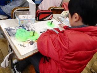 6・7組では、ペットボトルを使った作品作りをしています。