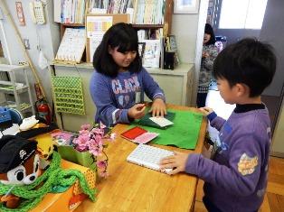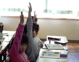 1年生は算数の授業で、算数セットの中から数字のカードを