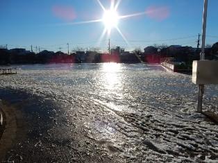 まるでスケートリンク?のよう。しばらく校庭は使えそうにありません。