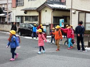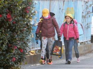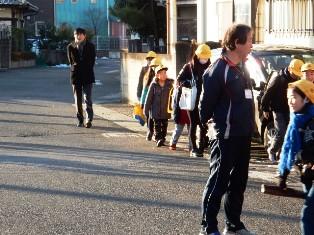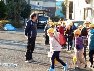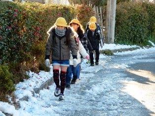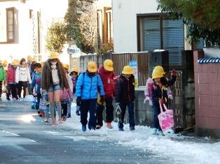 転んでしまった子どももいましたが、事故なく登校することができました。